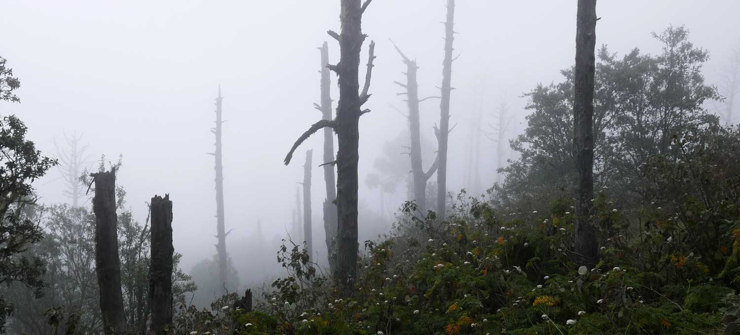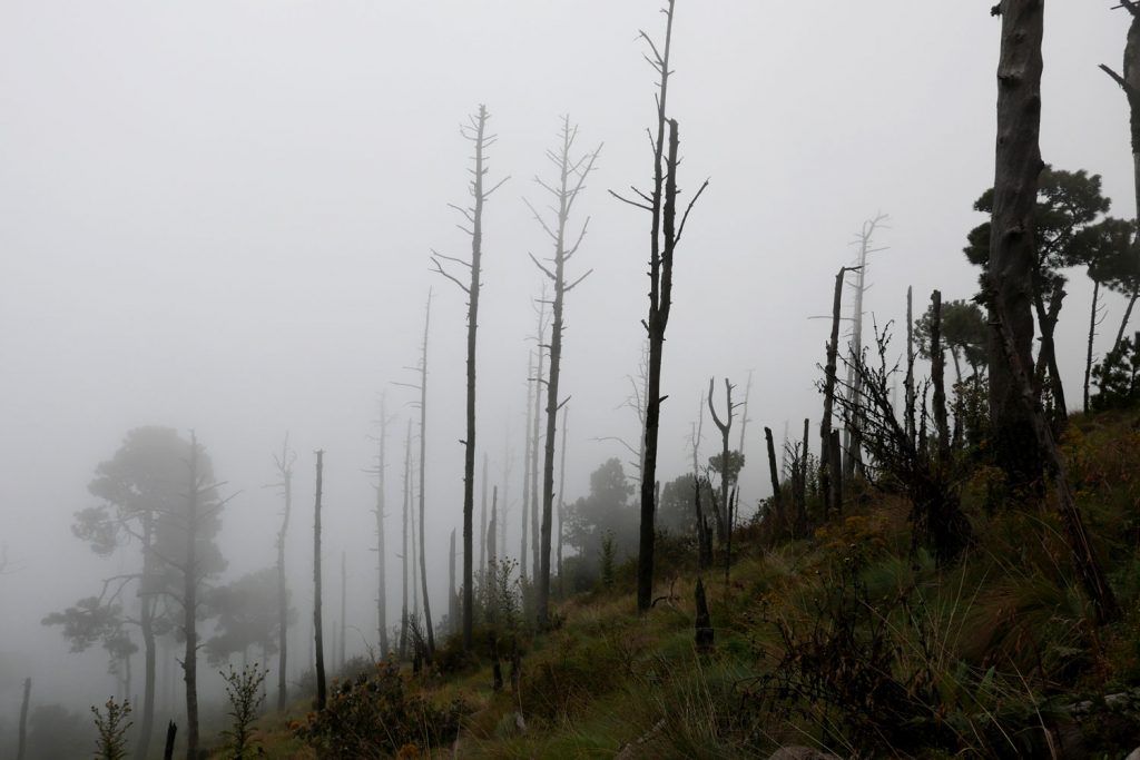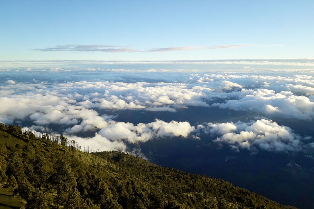 An viel Schlaf ist hier auf knapp 4000 m ohnehin nicht zu denken, dazu kommen Temperaturen von 5 Grad und die Feuchtigkeit, die der Nebel mit sich gebracht hat. Ein Nebel, der schon beim Aufstieg ein paar Stunden zuvor alles verhüllt hat und nun auch hier im Basislager jegliche Sicht unmöglich macht. Dabei war es doch gerade diese Aussicht, die uns mehrere Stunden und über 2000 Höhenmeter diesen Vulkan erklimmen hat lassen und uns dazu gebracht hat, hier oben eine eiskalte Nacht in einem Zelt zu verbringen; das Versprechen von hier aus auf den Nachbarvulkan blicken zu können, der als einer der aktivsten Vulkane der Welt gilt, der Vulkan Fuego. Doch der Nebel verdeckt jegliche Welt zwei Meter entfernt von uns.