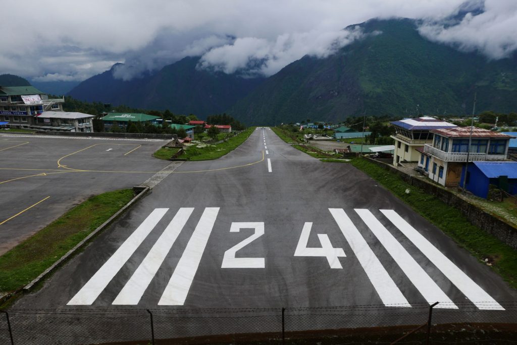 Zurück gings dann mit dem Kleinflugzeug von Lukla nach Kathmandu. Die einzige Start- und Landebahn ist stark nach unten geneigt, um die Flugzeuge beim Landen zusätzlich abzubremsen – damit sie nicht in die Felswand knallen und um sie beim Start zusätzlich zu beschleunigen, damit sie nicht in den Abgrund stürzen. Leider reicht auch die Neigung sehr oft nicht aus, was den Lukla Airport zum gefährlichsten Flughafen der Welt macht. Was für ein Abschluss!