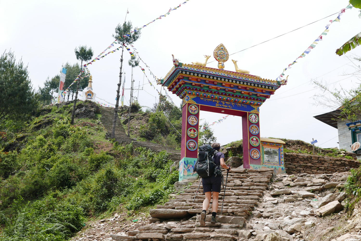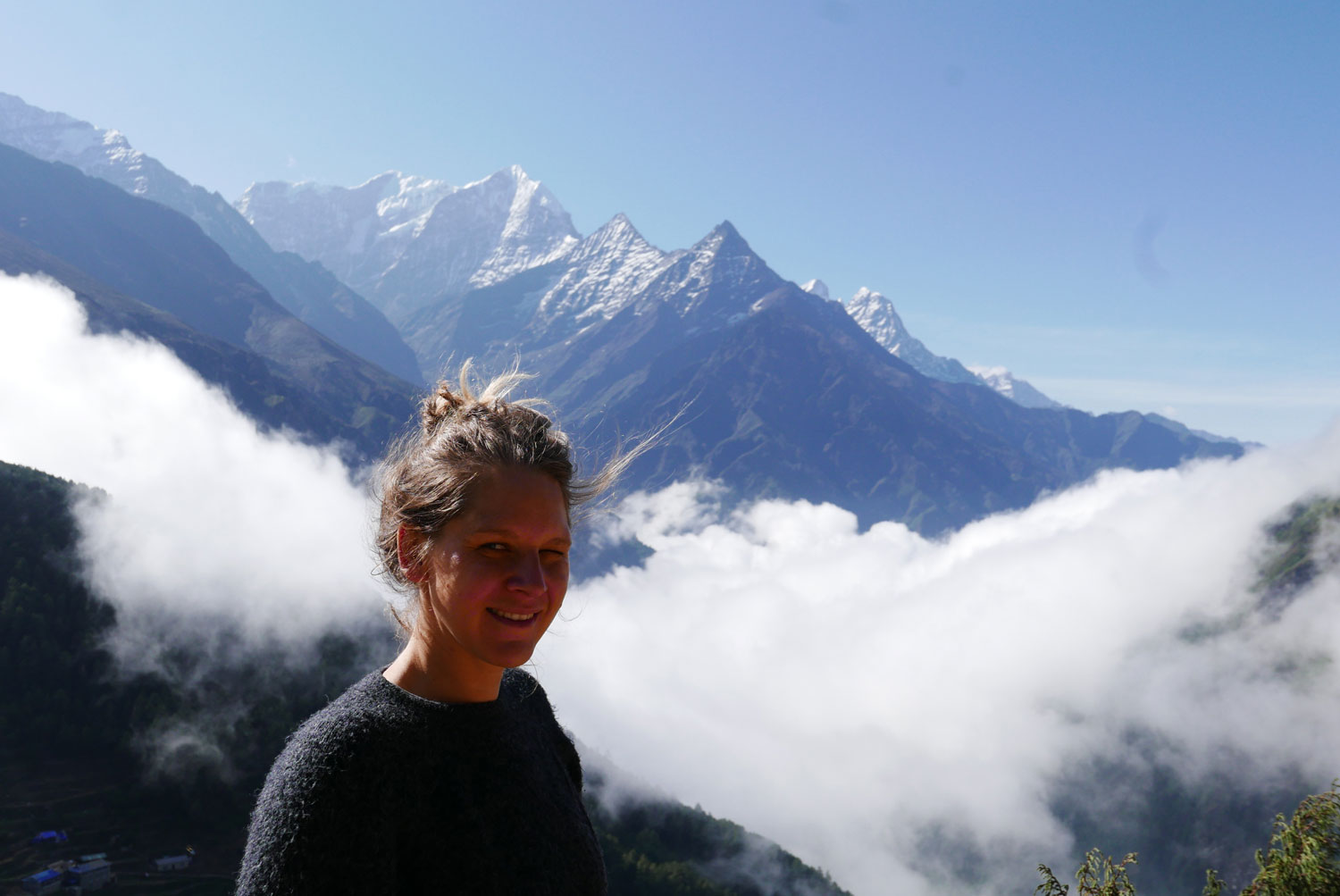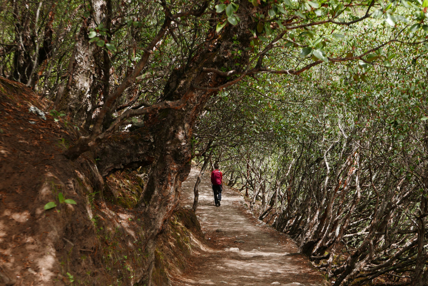 Nach dieser entspannten begann die Wanderung! Drei Tage lang geht es steil bergauf, gut und gern mal über 1.000 Höhenmeter, danach geht es steil bergab, nicht selten über 1.000 Höhenmeter. Danach geht es wieder steil bergauf (diesmal vielleicht nur 800 Höhenmeter), endlich oben angekommen geht es wieder steil bergab (ja genau diese gerade erklommenen Höhenmeter). Endlich unten am Fluss angekommen geht es – man ahnt es schon – steil bergauf. Wieder 1.000 Höhenmeter. Nach drei Tagen, um viele Bekanntschaften mit Eseln und besonders dessen Ausscheidungen reicher, ist man am unteren Tal von Lukla angekommen. Und hier beginnt unsere eigentliche Reise.