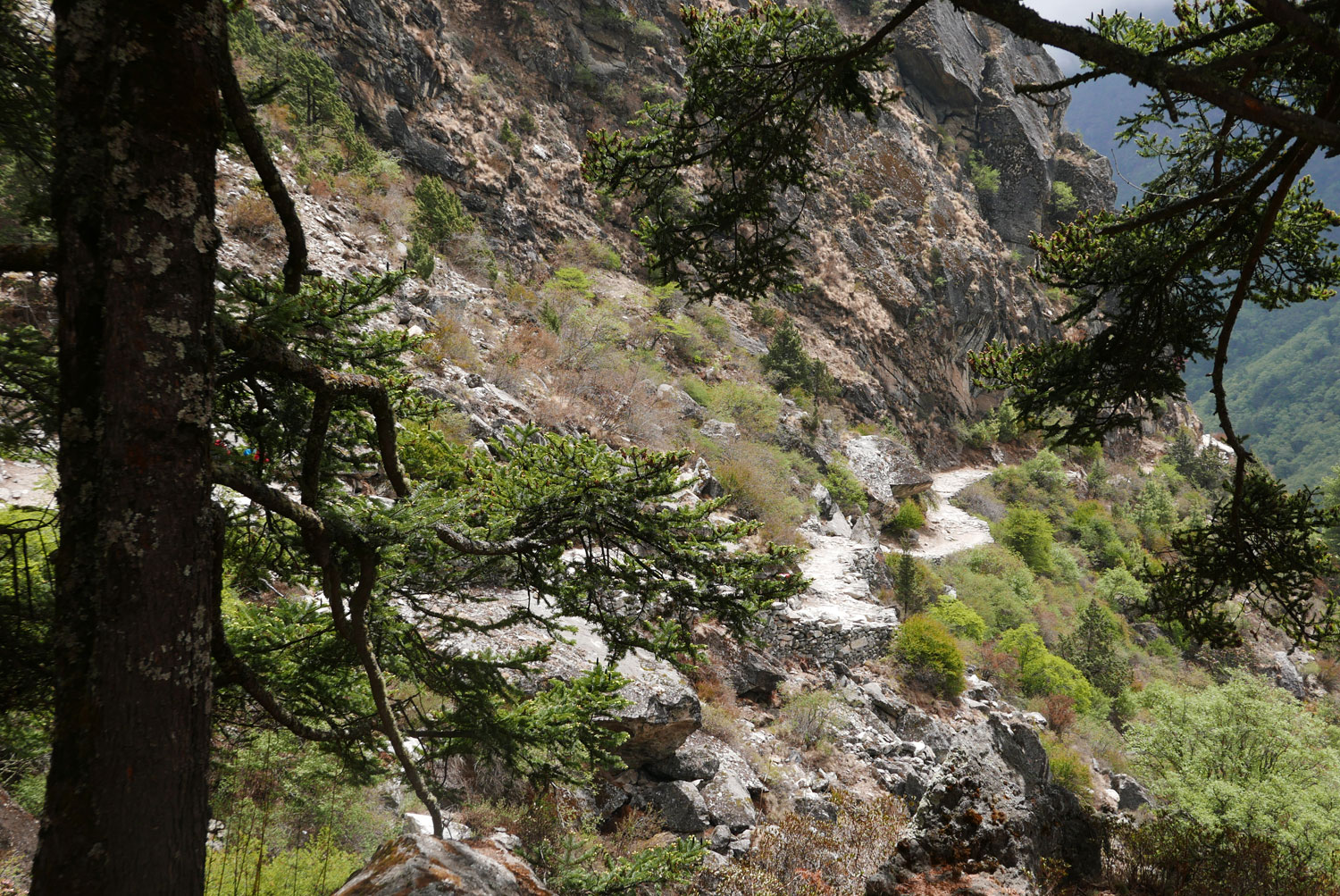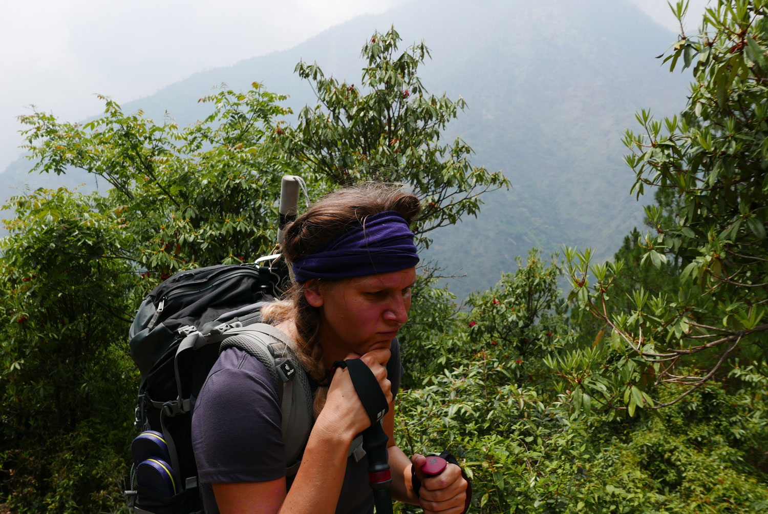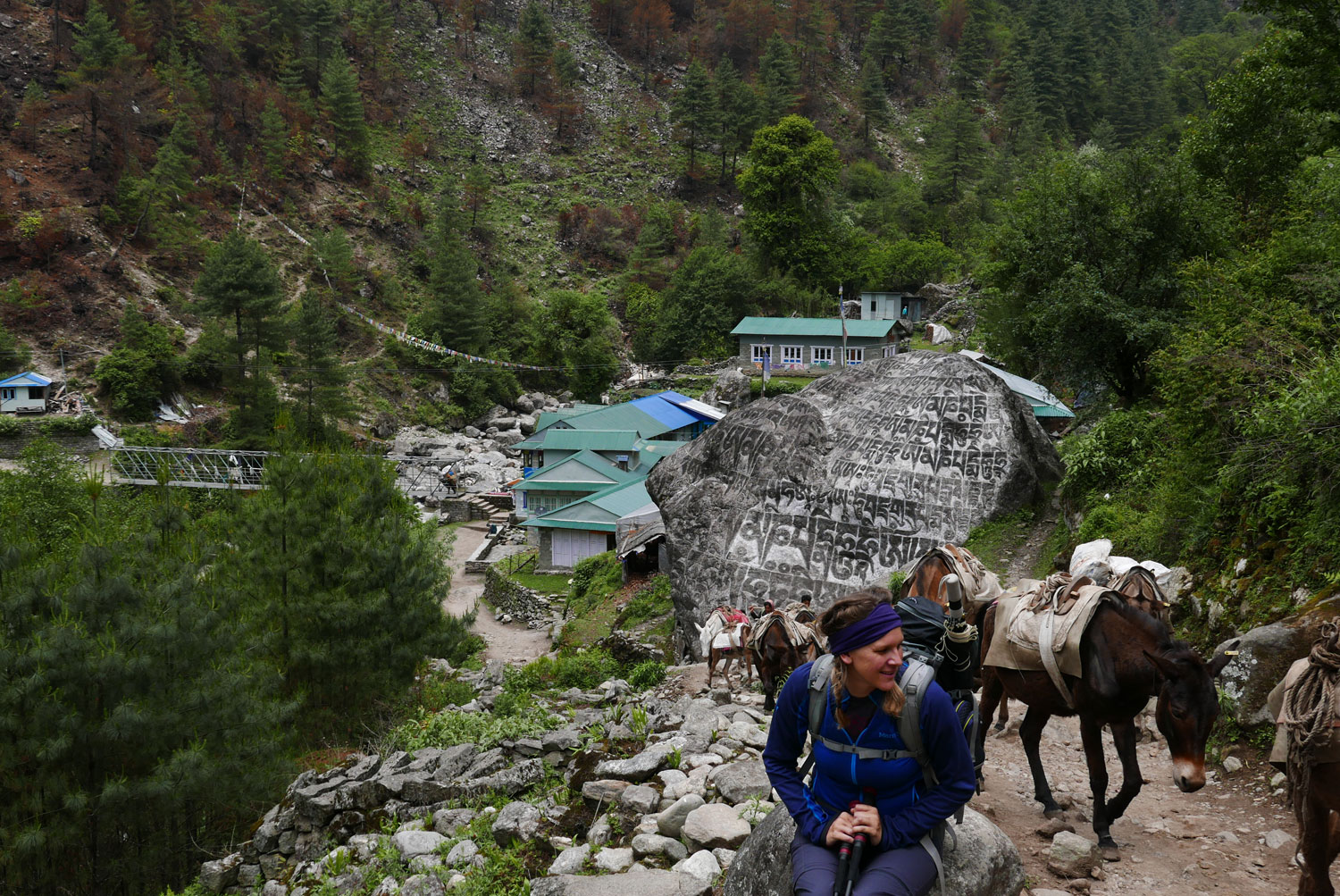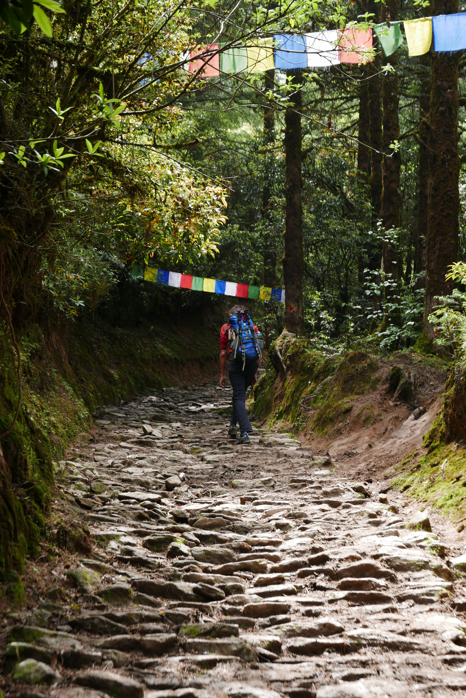 Nach dieser entspannten begann die Wanderung! Drei Tage lang geht es steil bergauf, gut und gern mal über 1.000 Höhenmeter, danach geht es steil bergab, nicht selten über 1.000 Höhenmeter. Danach geht es wieder steil bergauf (diesmal vielleicht nur 800 Höhenmeter), endlich oben angekommen geht es wieder steil bergab (ja genau diese gerade erklommenen Höhenmeter). Endlich unten am Fluss angekommen geht es – man ahnt es schon – steil bergauf. Wieder 1.000 Höhenmeter. Nach drei Tagen, um viele Bekanntschaften mit Eseln und besonders dessen Ausscheidungen reicher, ist man am unteren Tal von Lukla angekommen. Und hier beginnt unsere eigentliche Reise.