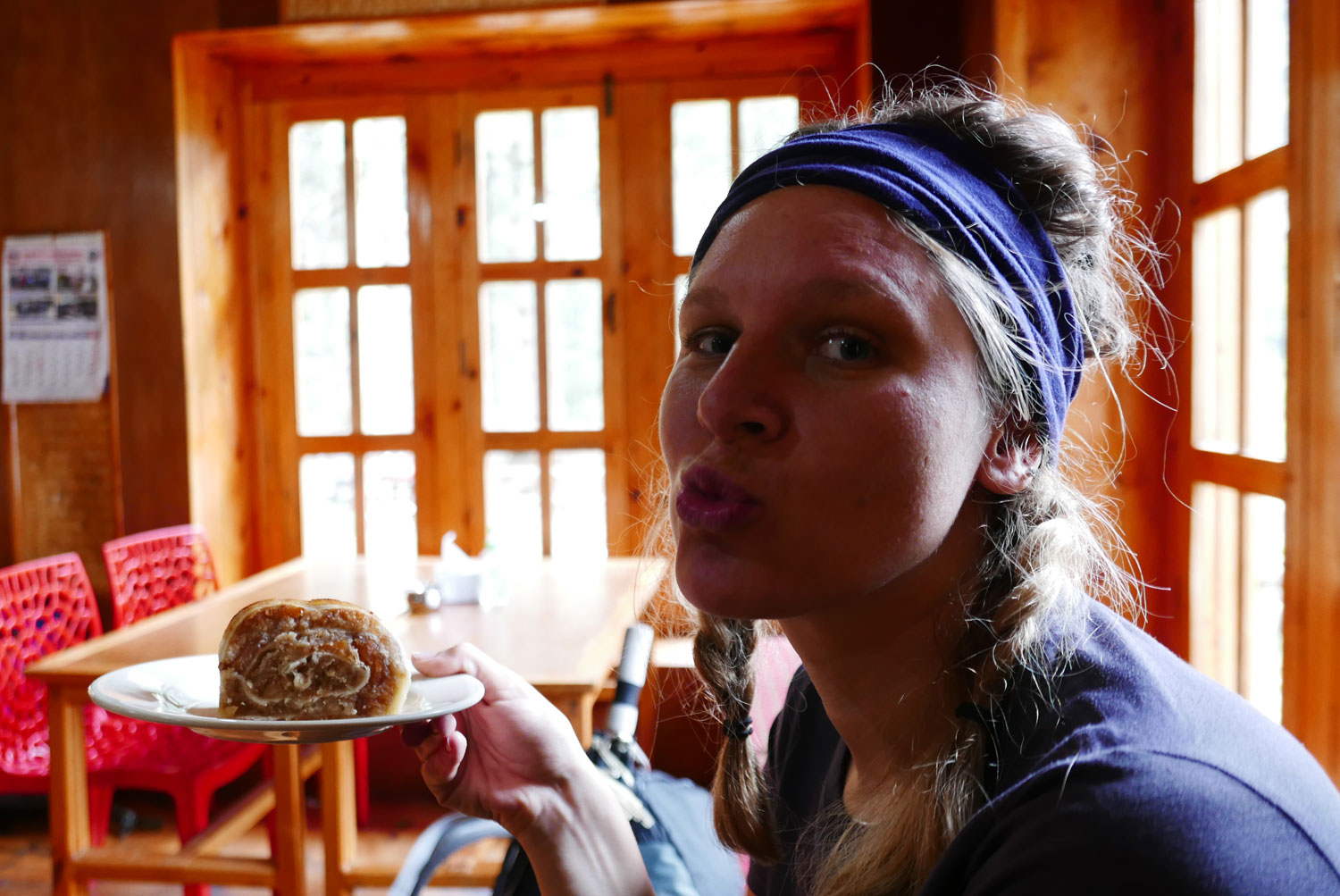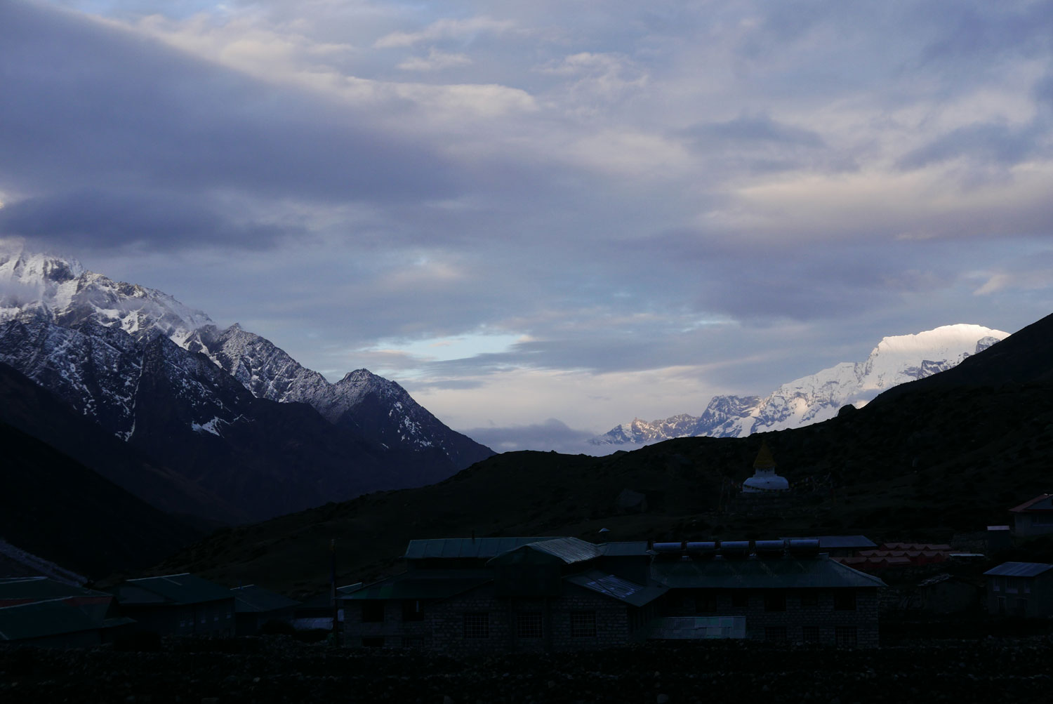 Am vierten Tag wachen wir in unserer Unterkunft auf, geweckt von der Sonne, die durchs Fenster strahlt. Der Schritt vor die Tür, lässt das Herz tanzen. Ein Schritt vor die Tür und das ganze Tal ist durchflutet von Licht und vom Gesang der Morgenvögel. Der Blick schweift über die Gebirgskette in die Ferne und der Gebetsgesang der Mönche hallt durchs ganze Tal. In wenigen Tagen sollen wir vor ebendiesen Bergen stehen. So zumindest die Verheißung. Dieser Moment ist einer der Gründe, weshalb sich die Strapazen lohnen.