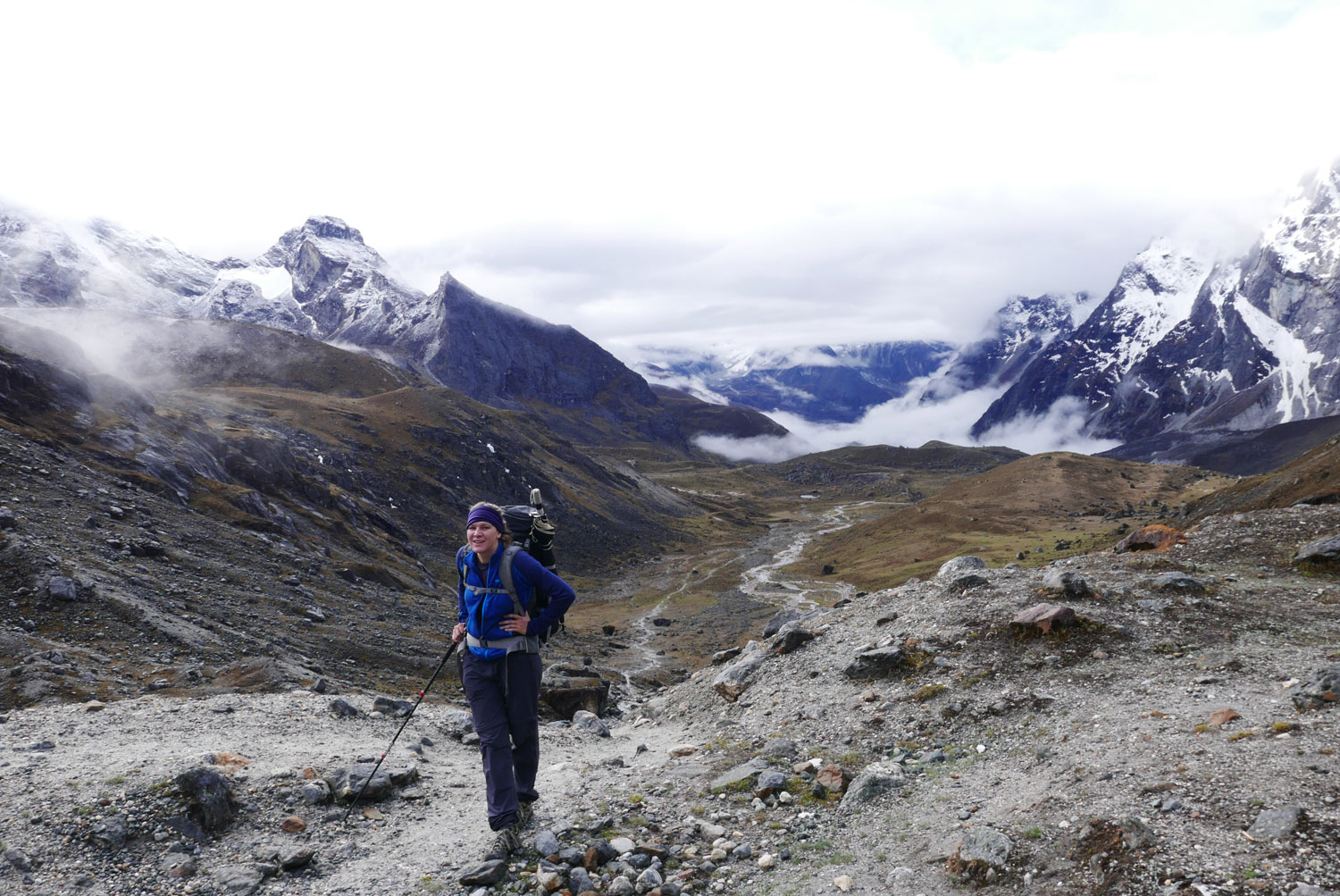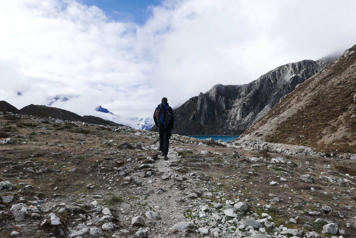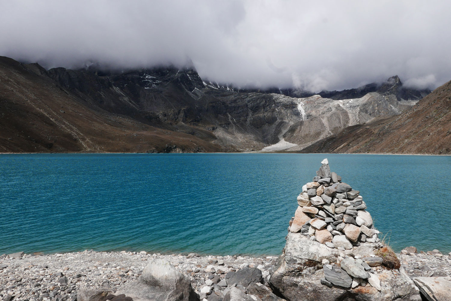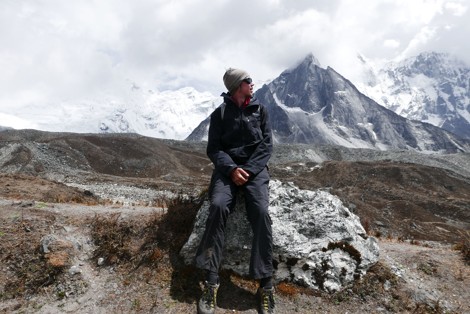 Und weil wir nicht den gleichen Weg zurückgehen wollten, sind wir kurzerhand über den Cho La Pass nach Gokyo abgezweigt. Ein elfstündiger Weg durchs Gebirge auf 5.300 m, völlig verschneit und vereist und zum Abschluss noch quer über den Ngozumpa-Gletscher, den größten Eisstrom Nepals. Belohnt wurden wir und unsere für den Pass spontan gegründete Seilschaft (nein, Seil gabs keins!) mit den Hochgebirgsseen Gokyos und einem wunderschönen Rückweg in die Sherpa-Hauptstadt Namche Bazaar.