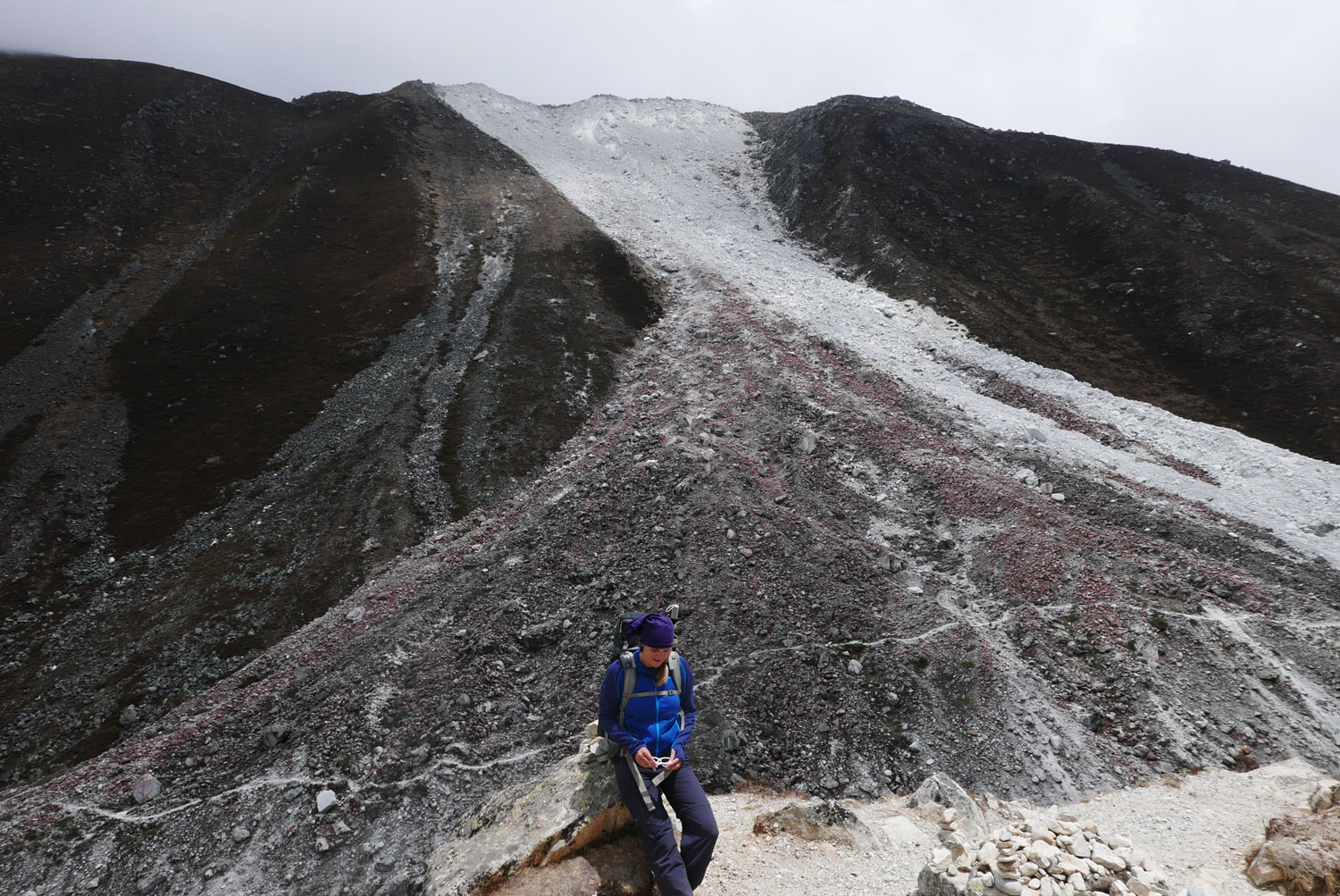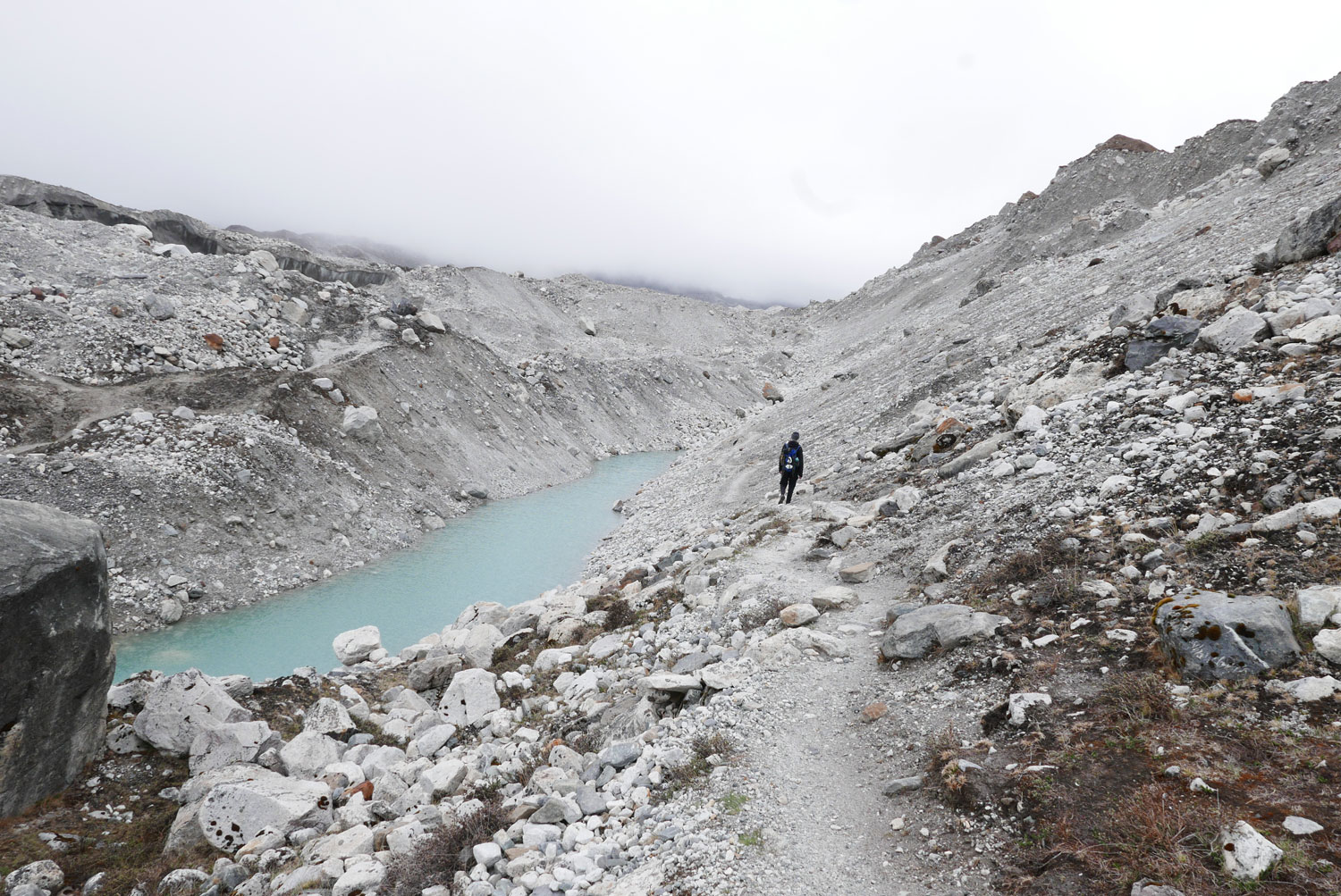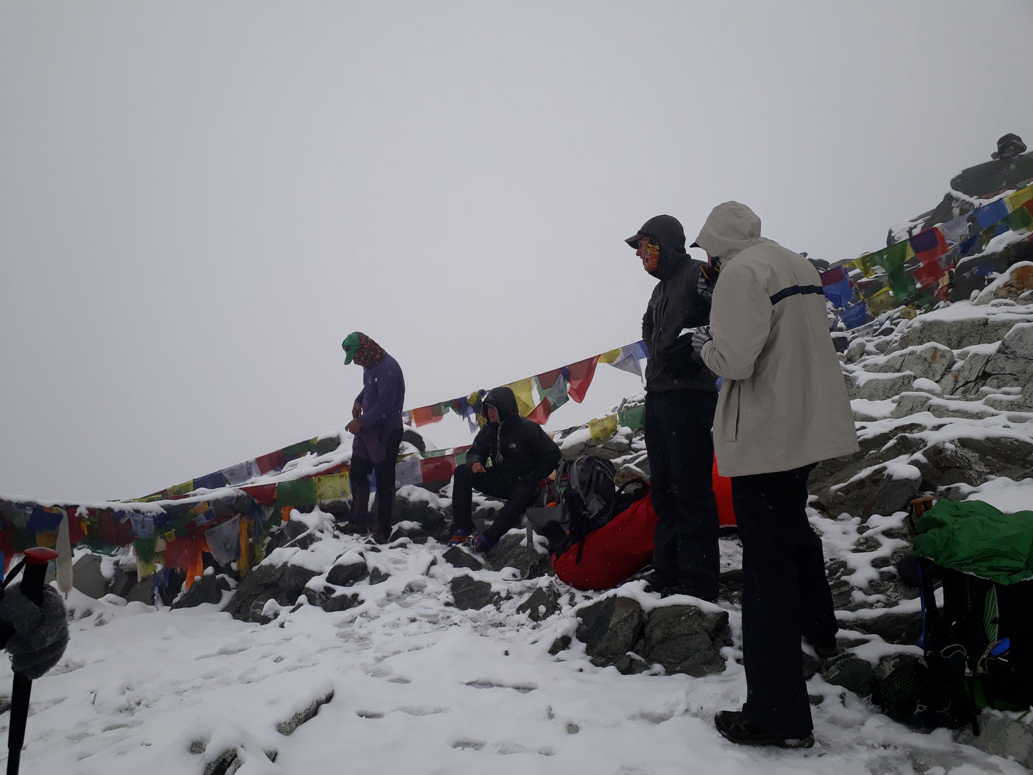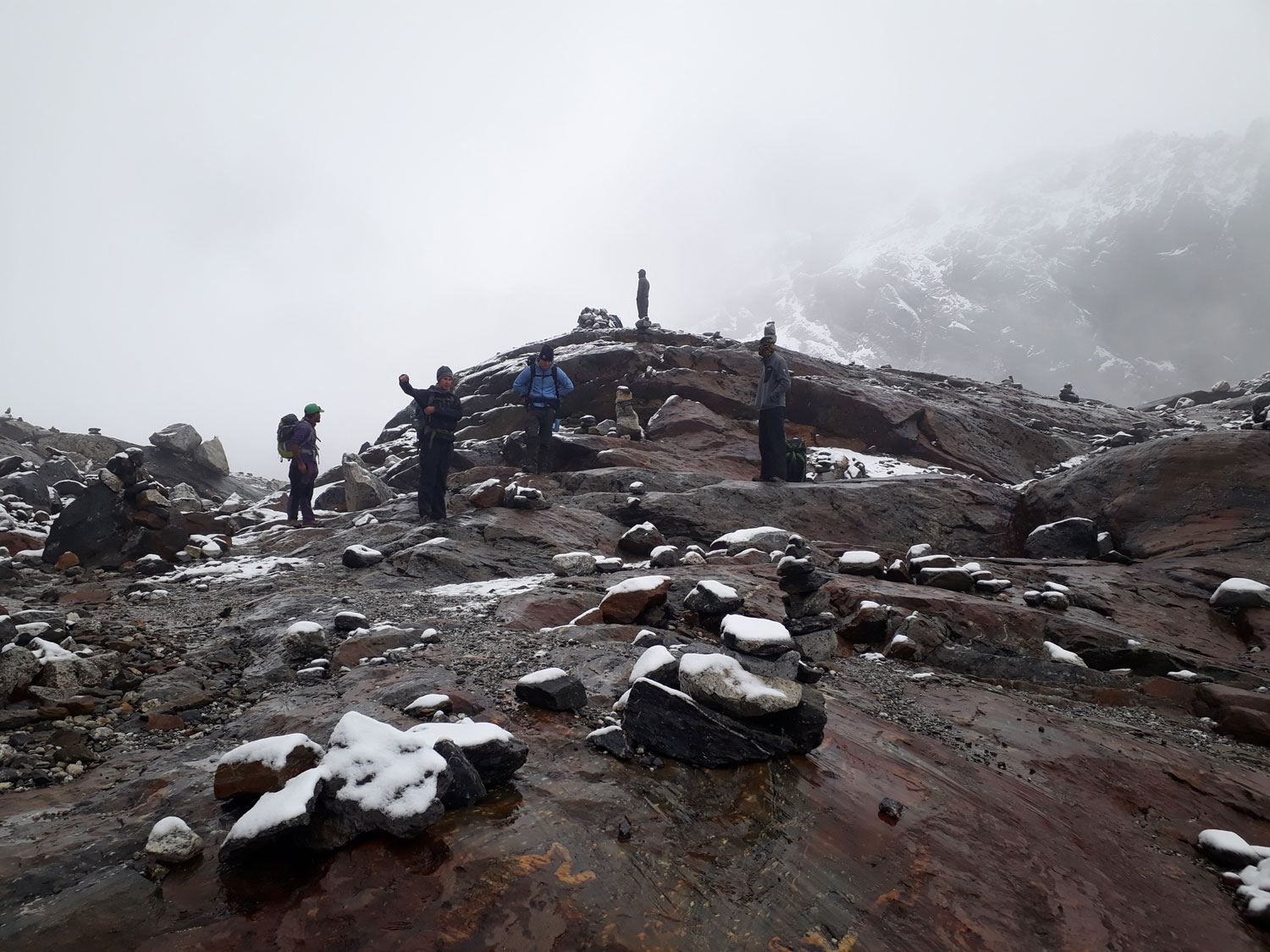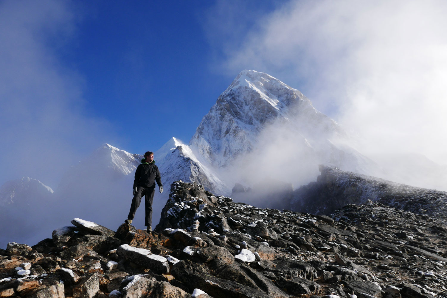Und weil wir nicht den gleichen Weg zurückgehen wollten, sind wir kurzerhand über den Cho La Pass nach Gokyo abgezweigt. Ein elfstündiger Weg durchs Gebirge auf 5.300 m, völlig verschneit und vereist und zum Abschluss noch quer über den Ngozumpa-Gletscher, den größten Eisstrom Nepals. Belohnt wurden wir und unsere für den Pass spontan gegründete Seilschaft (nein, Seil gabs keins!) mit den Hochgebirgsseen Gokyos und einem wunderschönen Rückweg in die Sherpa-Hauptstadt Namche Bazaar.