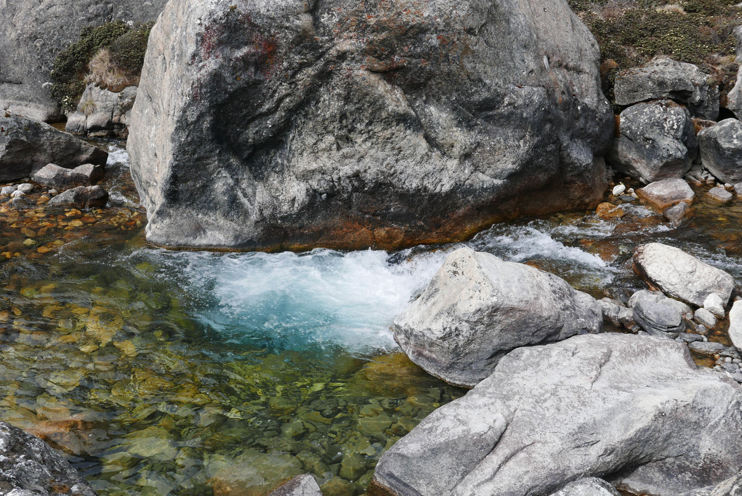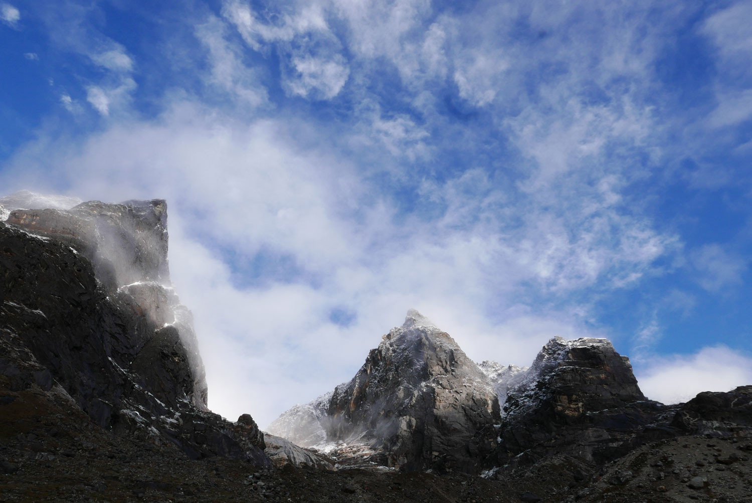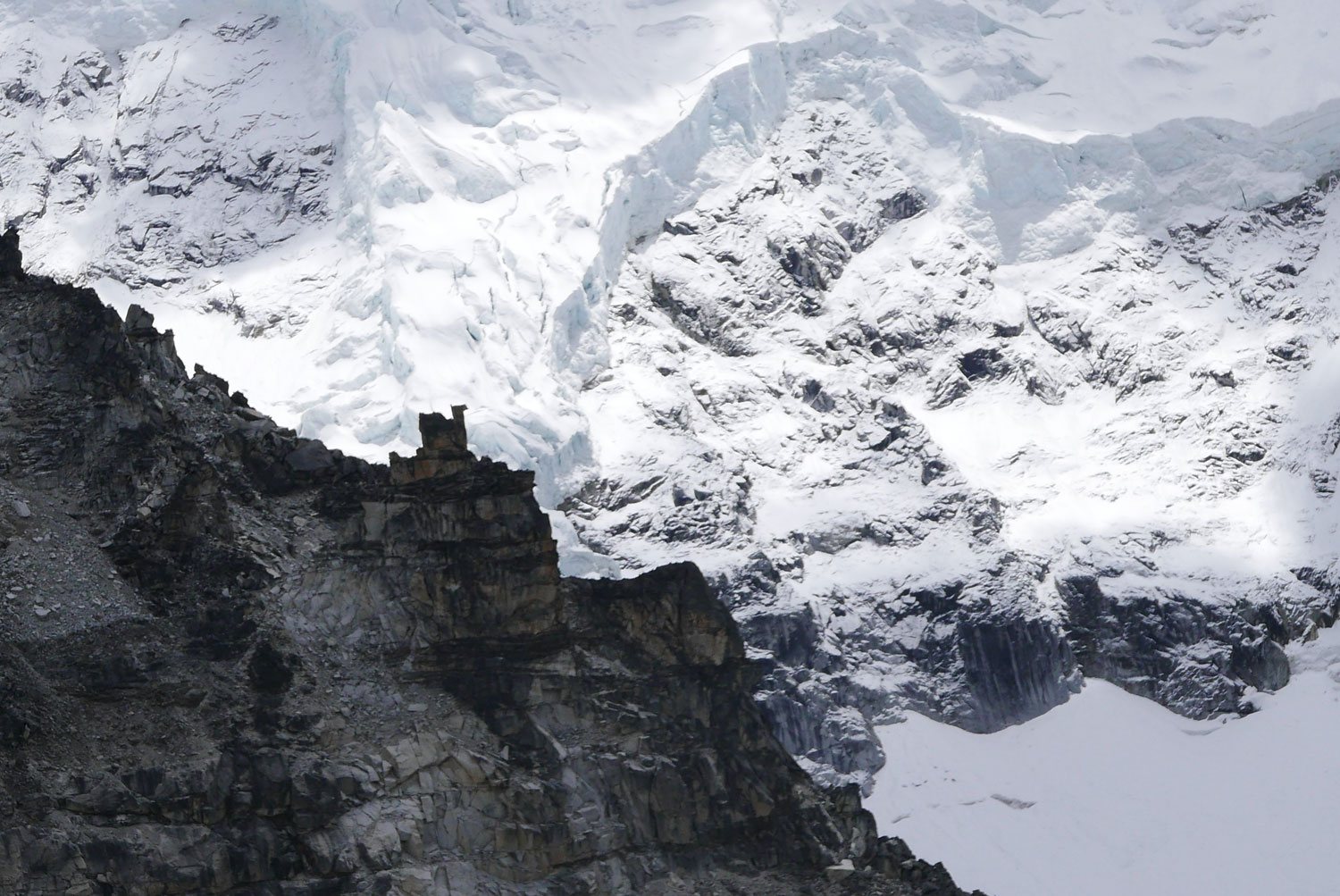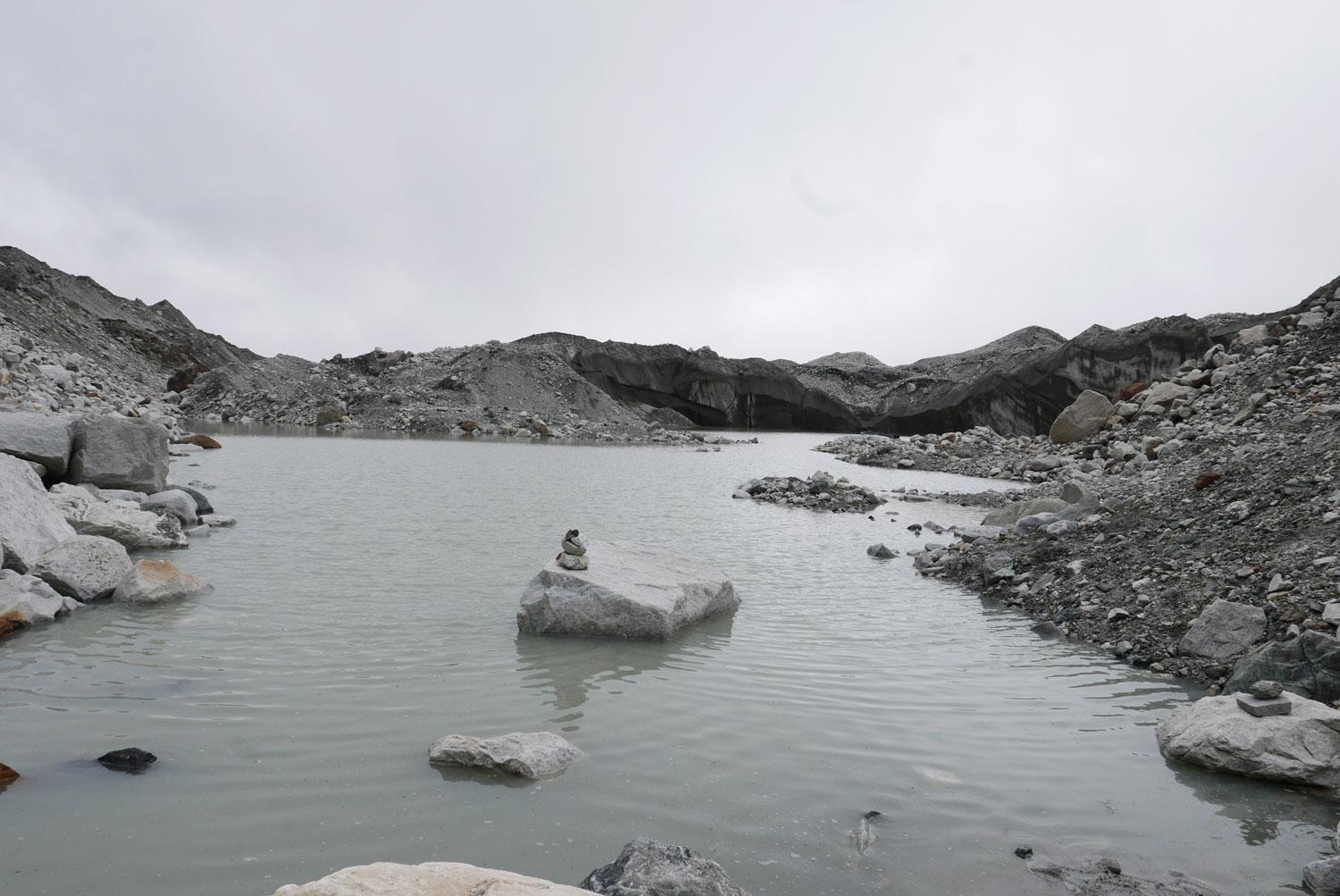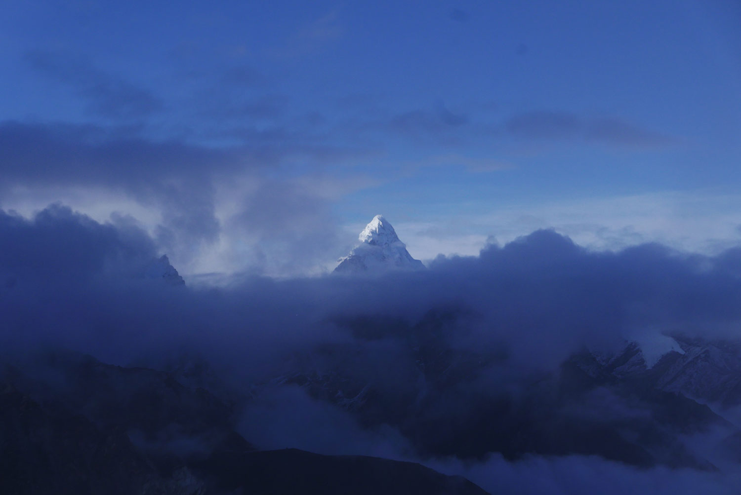 Und weil wir nicht den gleichen Weg zurückgehen wollten, sind wir kurzerhand über den Cho La Pass nach Gokyo abgezweigt. Ein elfstündiger Weg durchs Gebirge auf 5.300 m, völlig verschneit und vereist und zum Abschluss noch quer über den Ngozumpa-Gletscher, den größten Eisstrom Nepals. Belohnt wurden wir und unsere für den Pass spontan gegründete Seilschaft (nein, Seil gabs keins!) mit den Hochgebirgsseen Gokyos und einem wunderschönen Rückweg in die Sherpa-Hauptstadt Namche Bazaar.