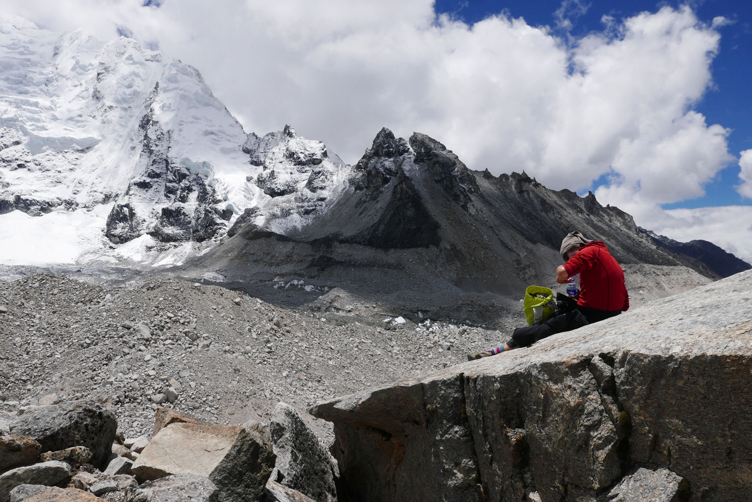 Von nun an sollte es nur noch bergauf gehen. 13 Tage lang. Bis wir vor jenem Berg standen, von dessen Spitze es nicht mehr höher geht. Zu Fuß zumindest. Ab Tag 5 bis Tag 16 bewegten wir uns auf Meereshöhen zwischen 4.000 und 5.500 Metern, der Absprunghöhe von Fallschirmspringern.