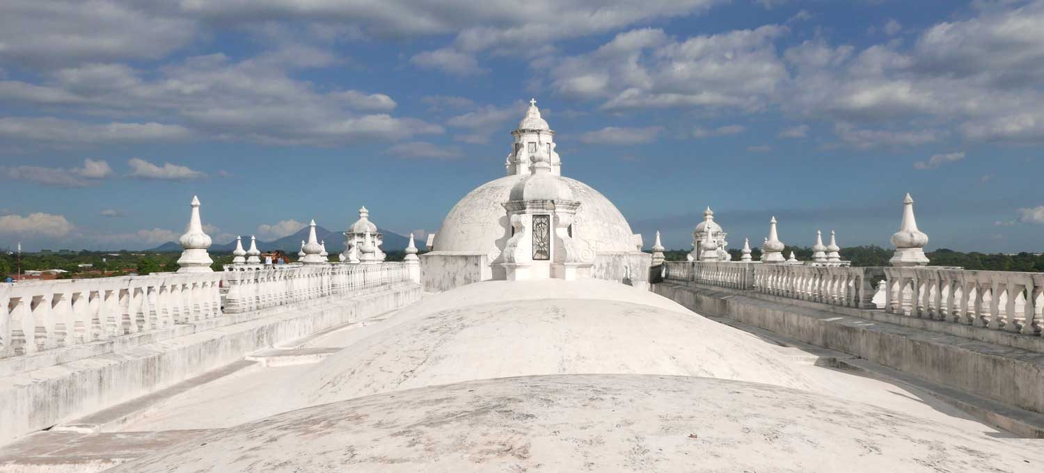 In León haben wir uns von Anfang an wohl gefühlt. Die Straßen waren nicht mehr so eng, die Einheimischen etwas lockerer, irgendwie fiel man als Tourist nicht mehr so sehr auf wie zuvor. Das erste mal seit langem zierte ein kleines Restaurant den Hauptplatz. Hier konnte man stundenlang mit Getränken, gutem Essen und einem Buch verweilen und alles genau beobachten. Zudem hatte man einen perfekten Ausblick auf die Basilica de La Asuncion, die größte Kirche in Zentralamerika. Das Besondere an dieser Kirche ist, dass man über eine schmale Wendeltreppe auf das Dach gelangen kann. Nur Barfuß war es erlaubt die Kirche zu betreten und zum großen Bedauern durften auch die Glocken nicht geläutet werden.